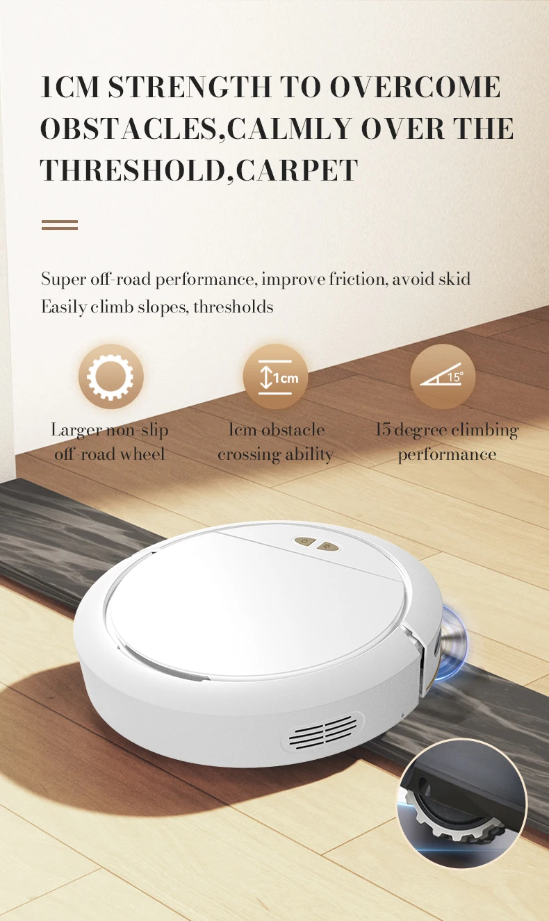 14.1cm strength surpasses obstacles, calmly climbing over thresholds and carpets. Ultra strong off-road performance, increased friction, prevents slipping, and easily climbs slopes and thresholds. Larger anti slip off-road wheels, 1cm obstacle crossing ability, 15 degree hill climbing performance